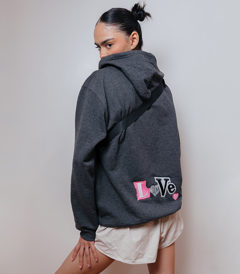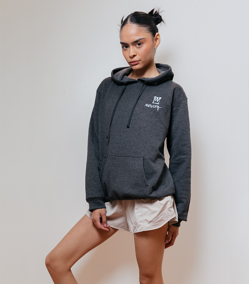 It features an MVLUCKY heart-shaped embroidery and "MOMENTS IN MOTION" as a distinctive detail.