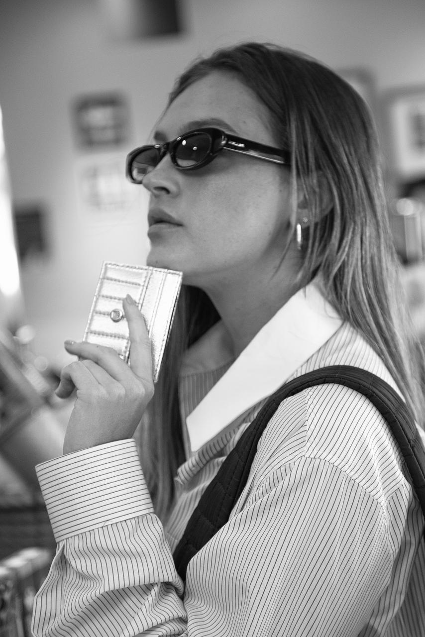 This iridescent vegan leather card holder stands out for its shiny and sophisticated finish. Featuring four card slots and a central pocket, its elegant design is completed with a nickel crown fitting and the MVLUCKY signature inside. An exclusive accessory that captures the essence of contemporary luxury.