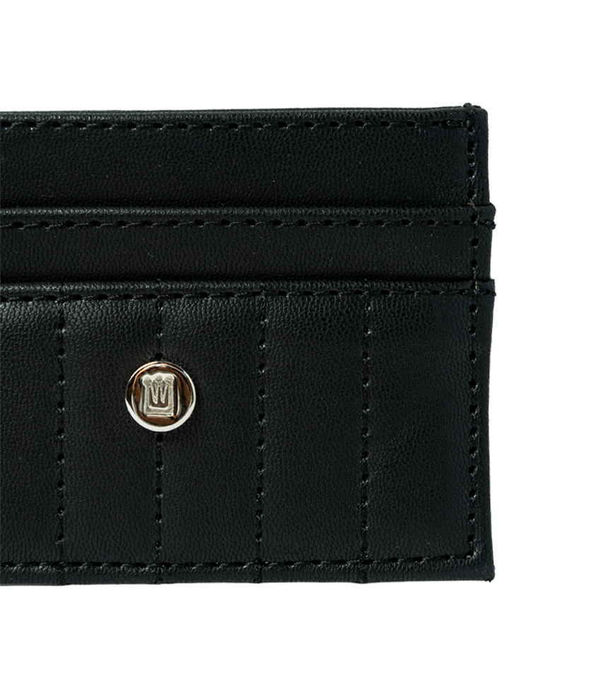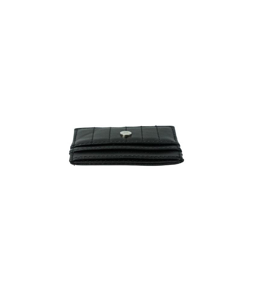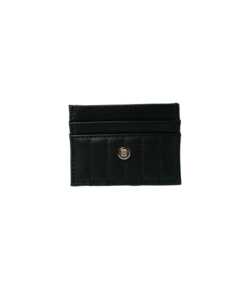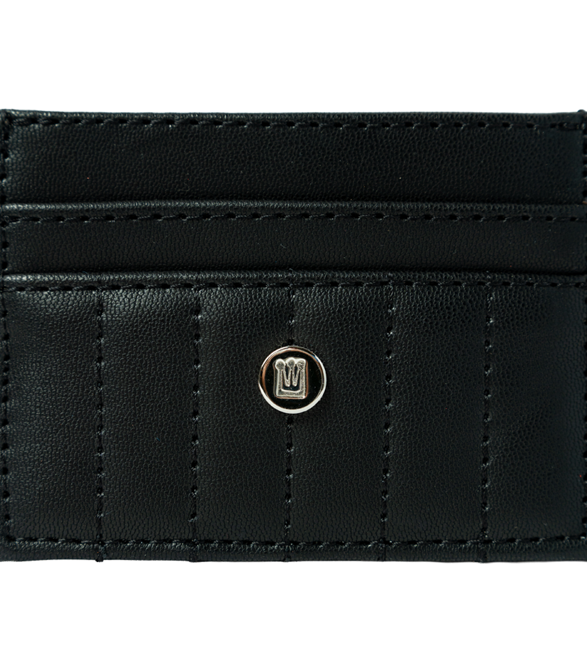Confeccionado en cuero vegano, este tarjetero exuda sofisticación. Su diseño minimalista incluye cuatro ranuras para tarjetas y un bolsillo central, mientras que el herraje de corona en nickel y la firma MVLUCKY interior garantizan su exclusividad. Un accesorio de lujo que redefine la elegancia moderna.