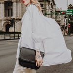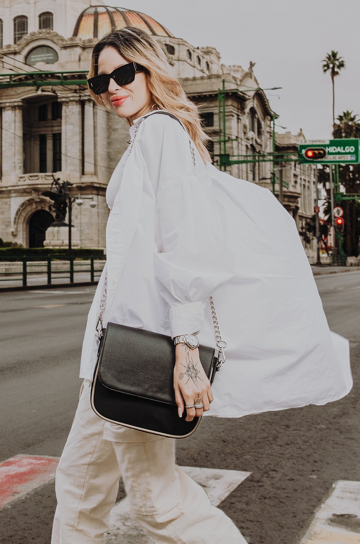 Elegante bolso confeccionado en cuero vegano de color negro con líneas color beige en los bordes. Su cadena ofrece la opción de llevarlo como bandolera, y cuenta con un cierre magnético que garantiza seguridad y practicidad. Este bolso combina moda y funcionalidad de manera ideal.
