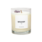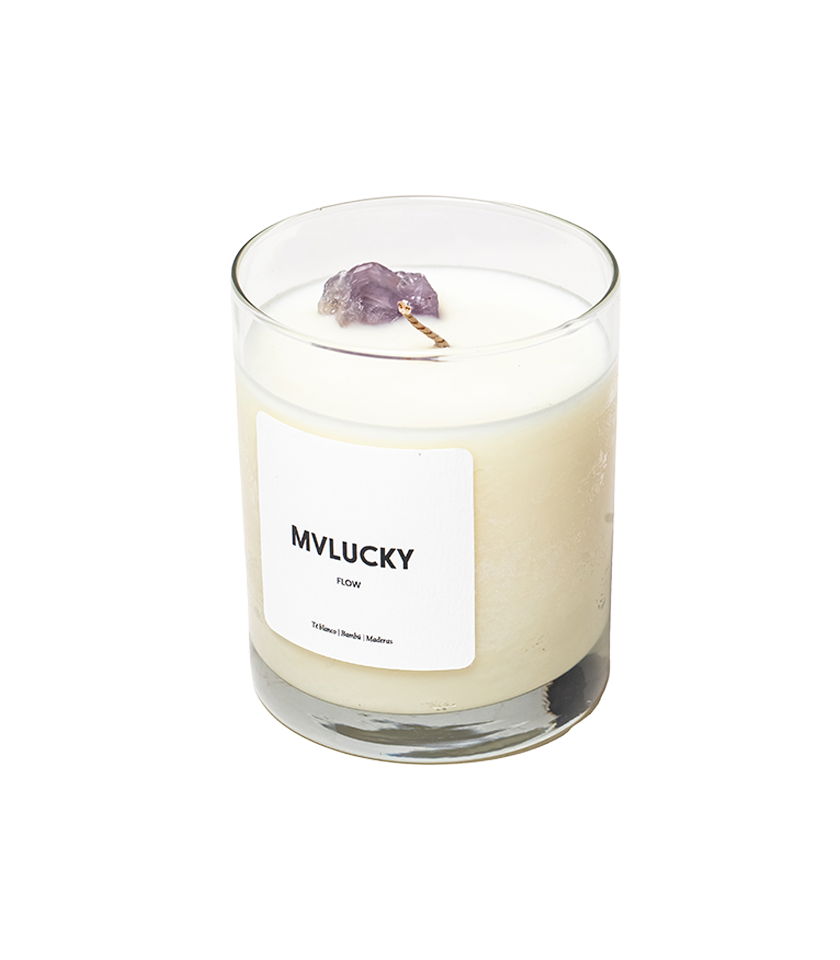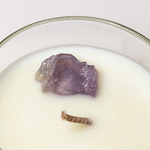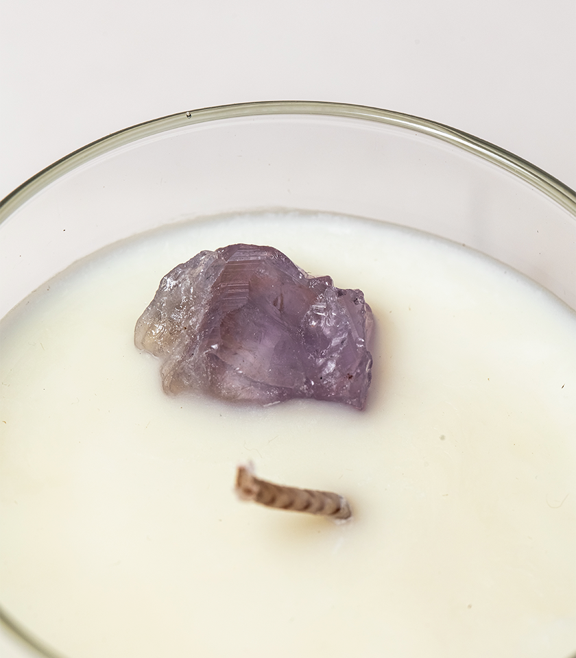 Cada vela contiene una amatista, piedra conocida por calmar la mente, proteger la energía y potenciar la intuición. Su vibración espiritual te acompaña a reconectar con tu esencia, confiar en el proceso y permitir que la vida fluya con suavidad.